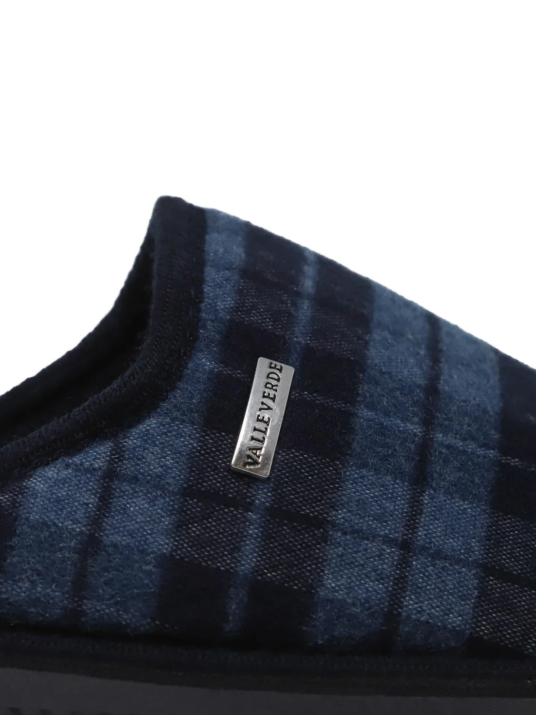 Bellissima pantofola VALLEVERDE in tessuto stile scozzese blu.
