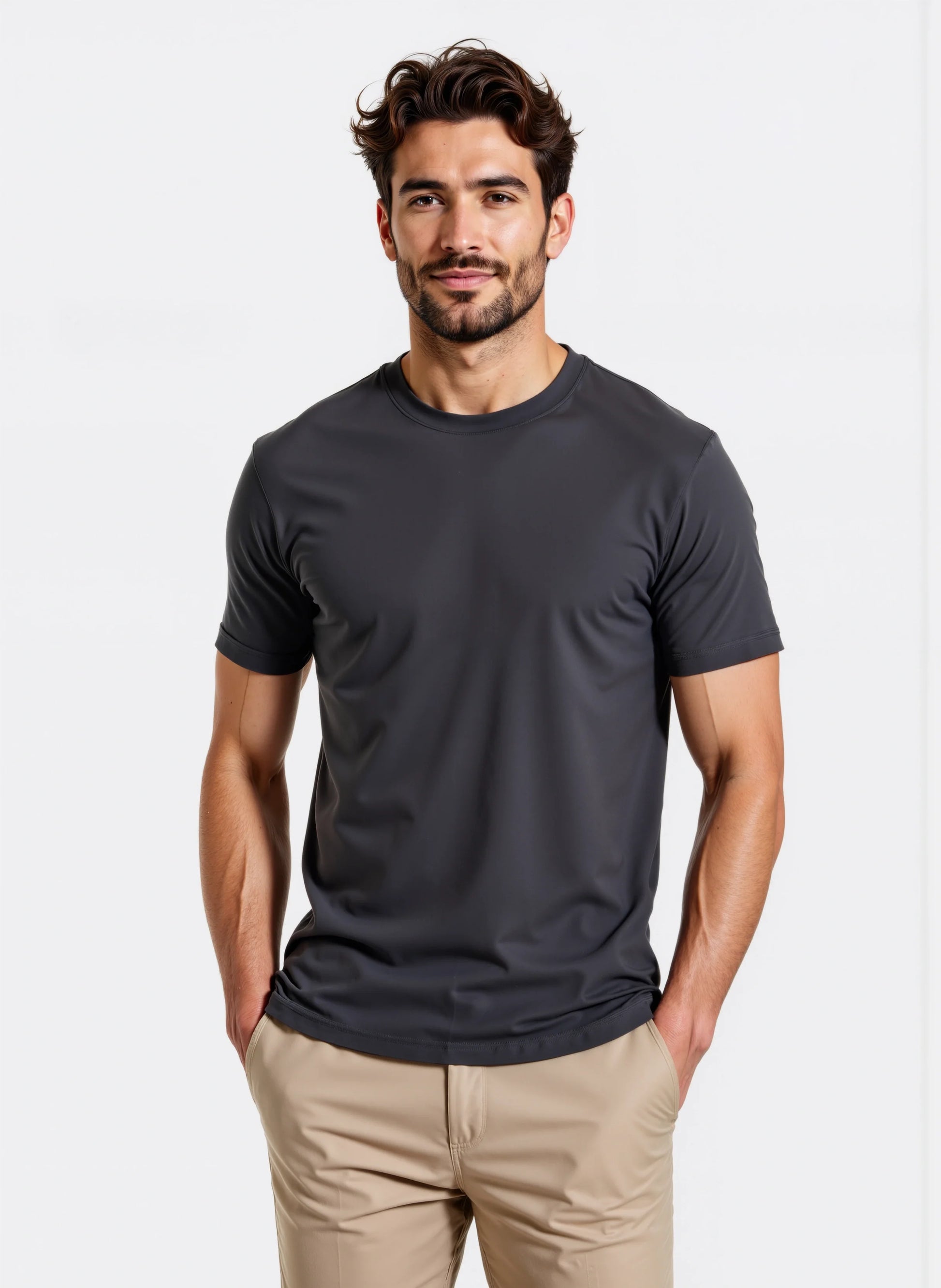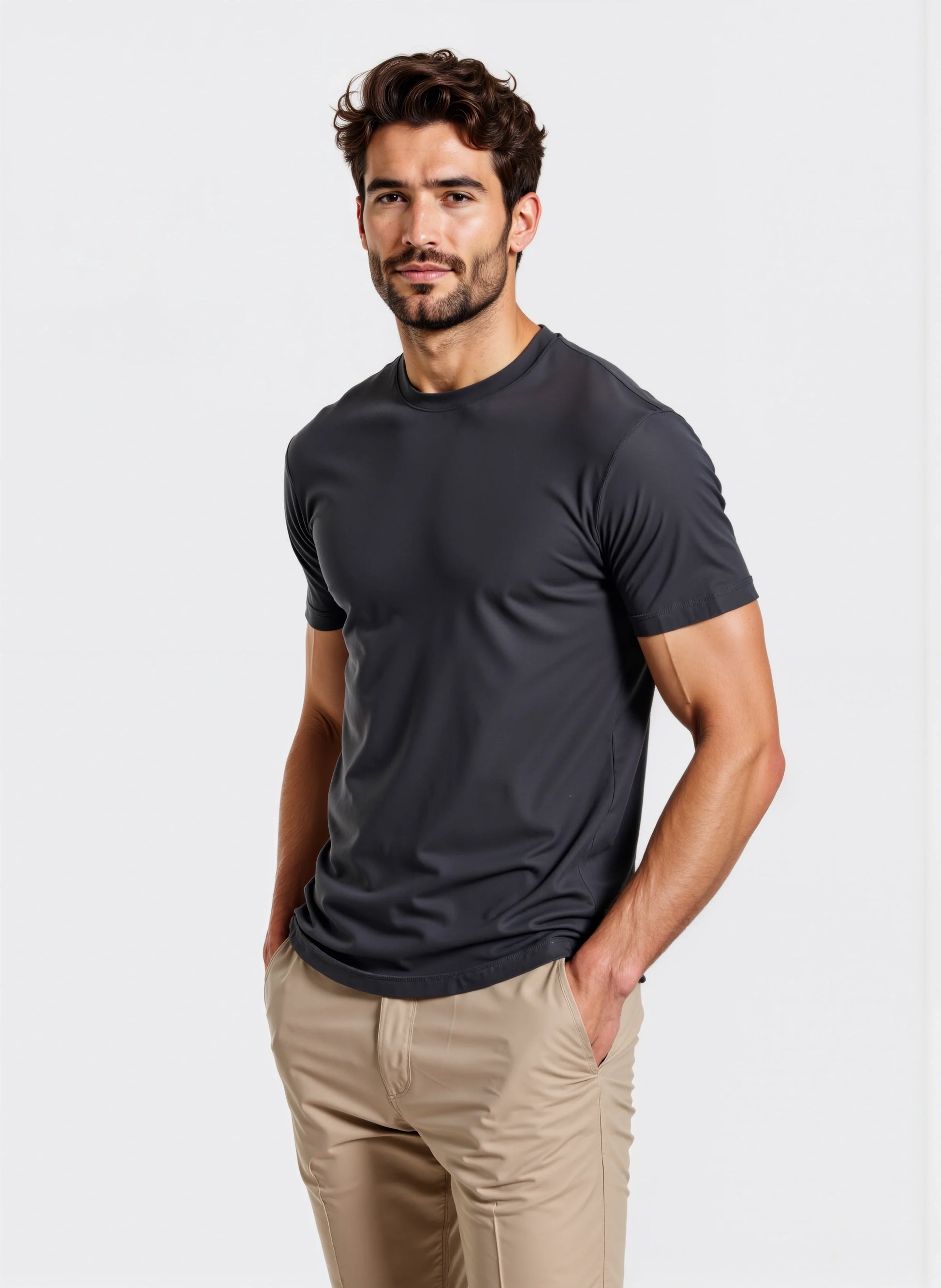 Eleva il tuo stile con la maglietta Paraggi Muscle Fit, un vero simbolo di eleganza e raffinatezza. Realizzata interamente in Italia, questa maglietta si presenta in un sofisticato colore grigio scuro, perfetto per ogni occasione. La silhouette aderente e sagomata esalta la tua figura, mentre le cuciture strategiche e il tessuto elasticizzato si adattano armoniosamente al tuo corpo, offrendo un comfort senza pari.