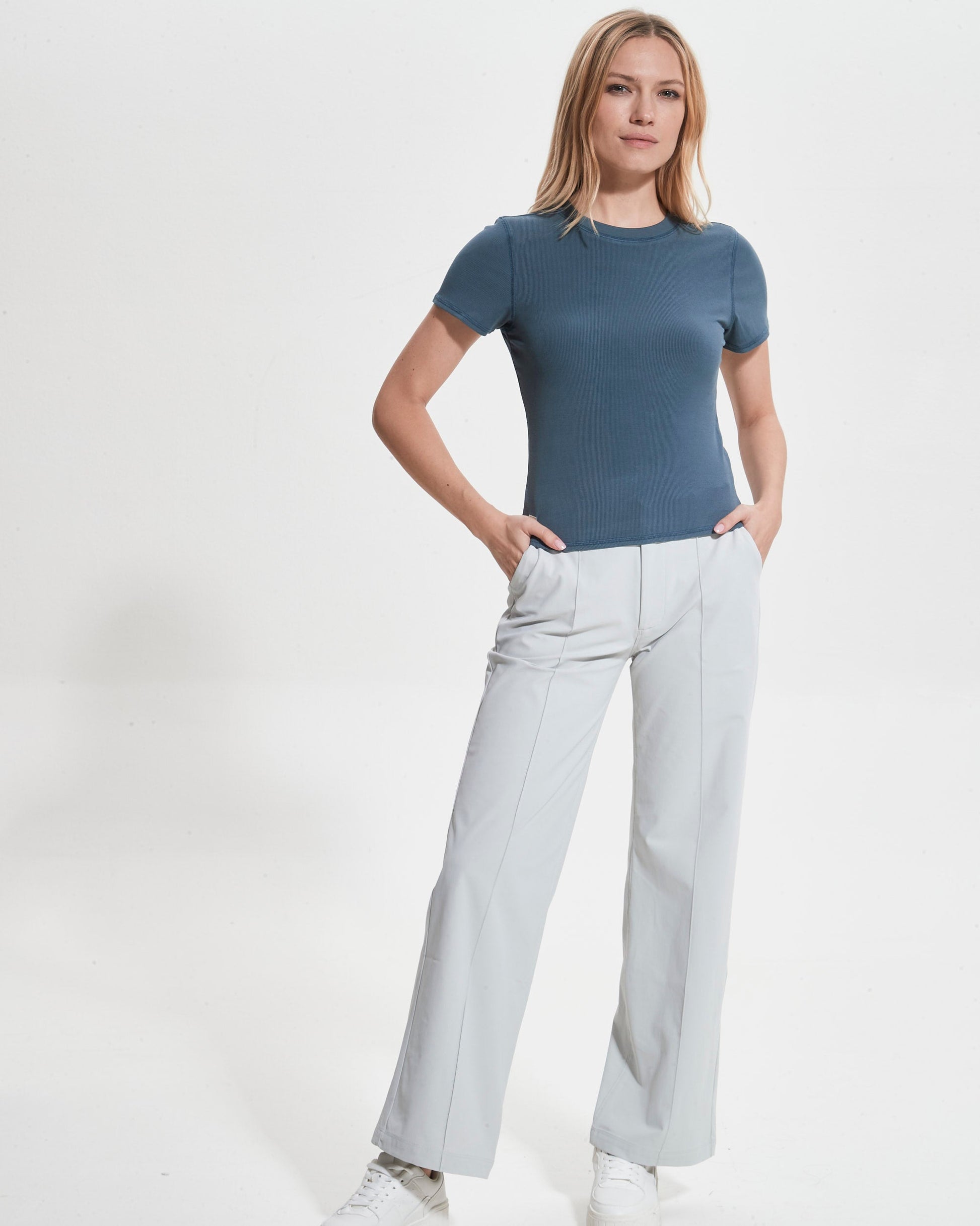 Elevate your everyday style with the Performance Rib Tee, featuring a luxurious Modal blend that redefines comfort. Its sleek, high-hip design and stretch rib knit ensure a flawless fit and timeless appeal. Perfect for layering, whether you’re in the studio or on the go. Discover the perfect fusion of elegance and versatility with this wardrobe essential.