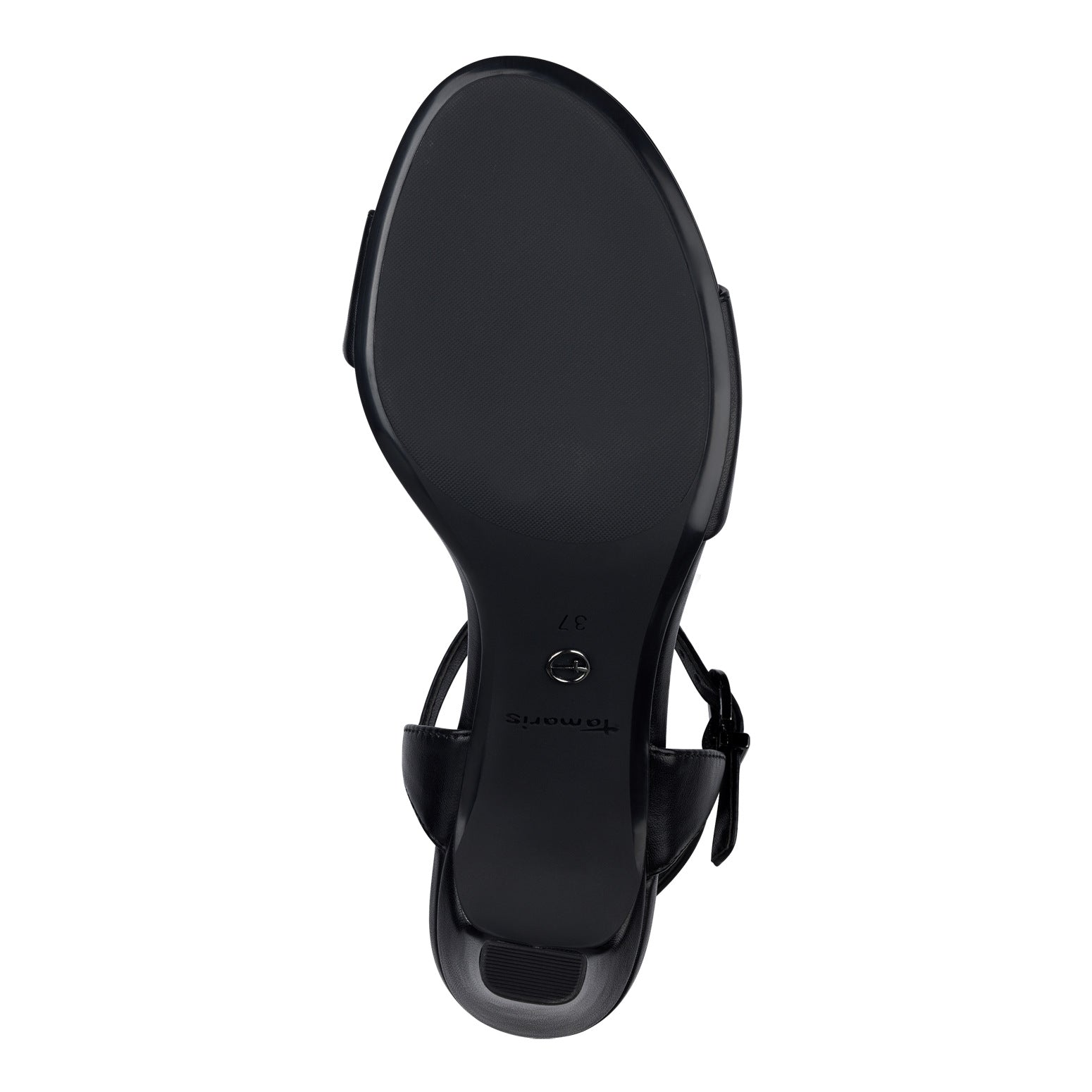 Sandalo elegante in nero con sottopiede imbottito in memory e con tacchetto e cinturino.