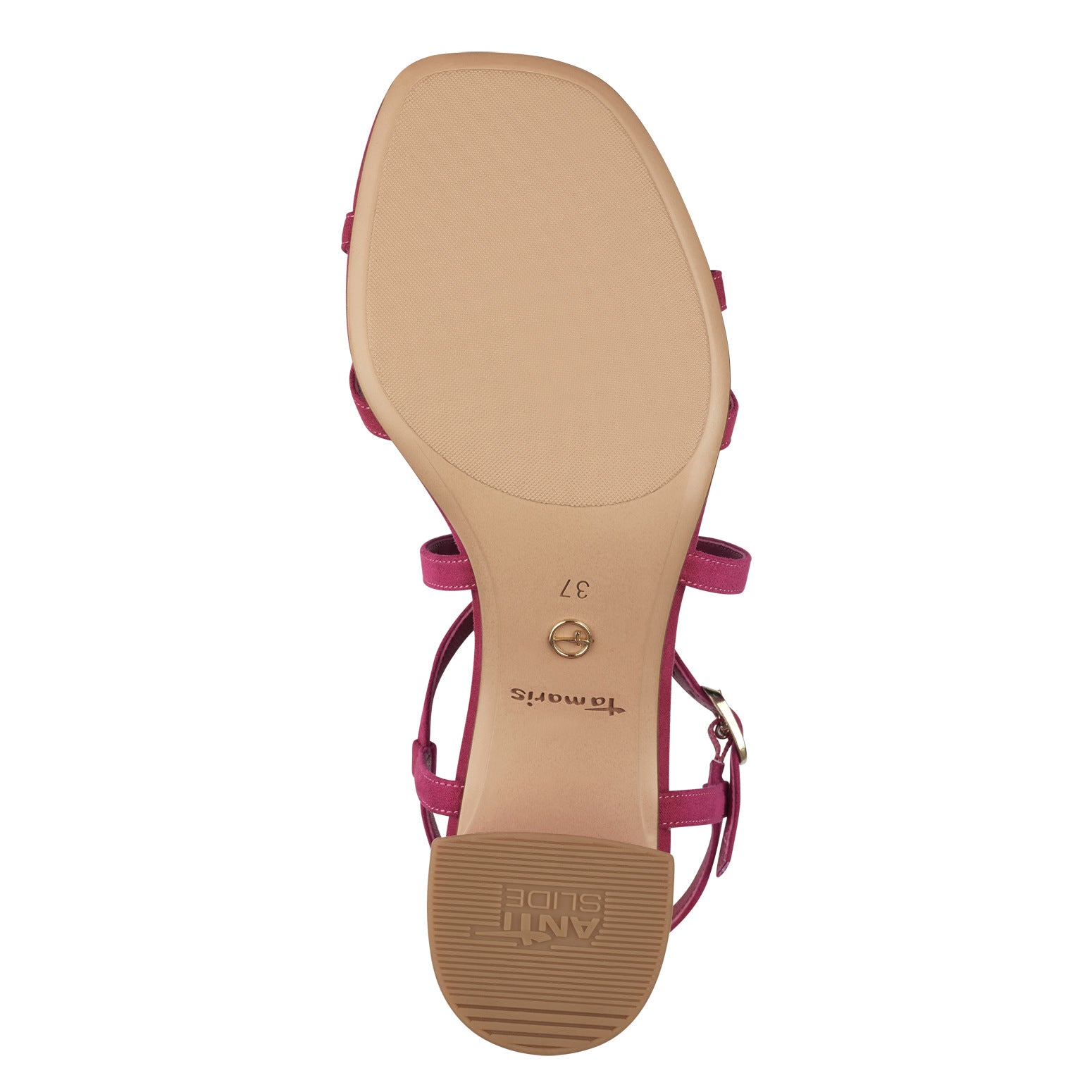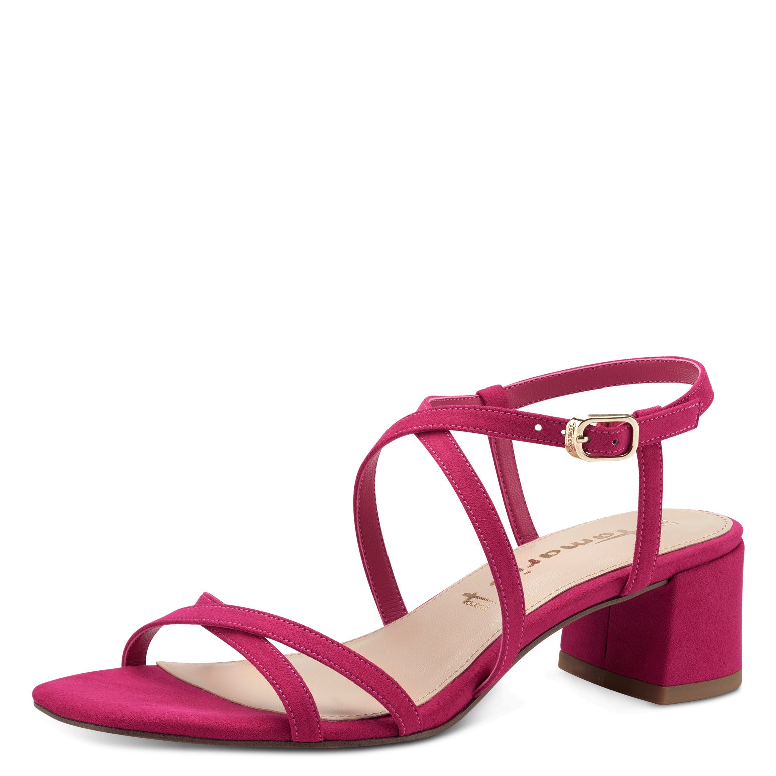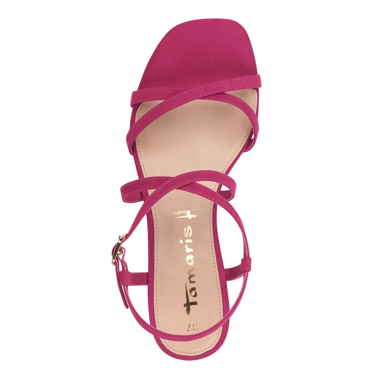 Sandalo in fuxia con tacchetto. Elegante e comodissimo con sottopiede in pelle imbottito in memory foam