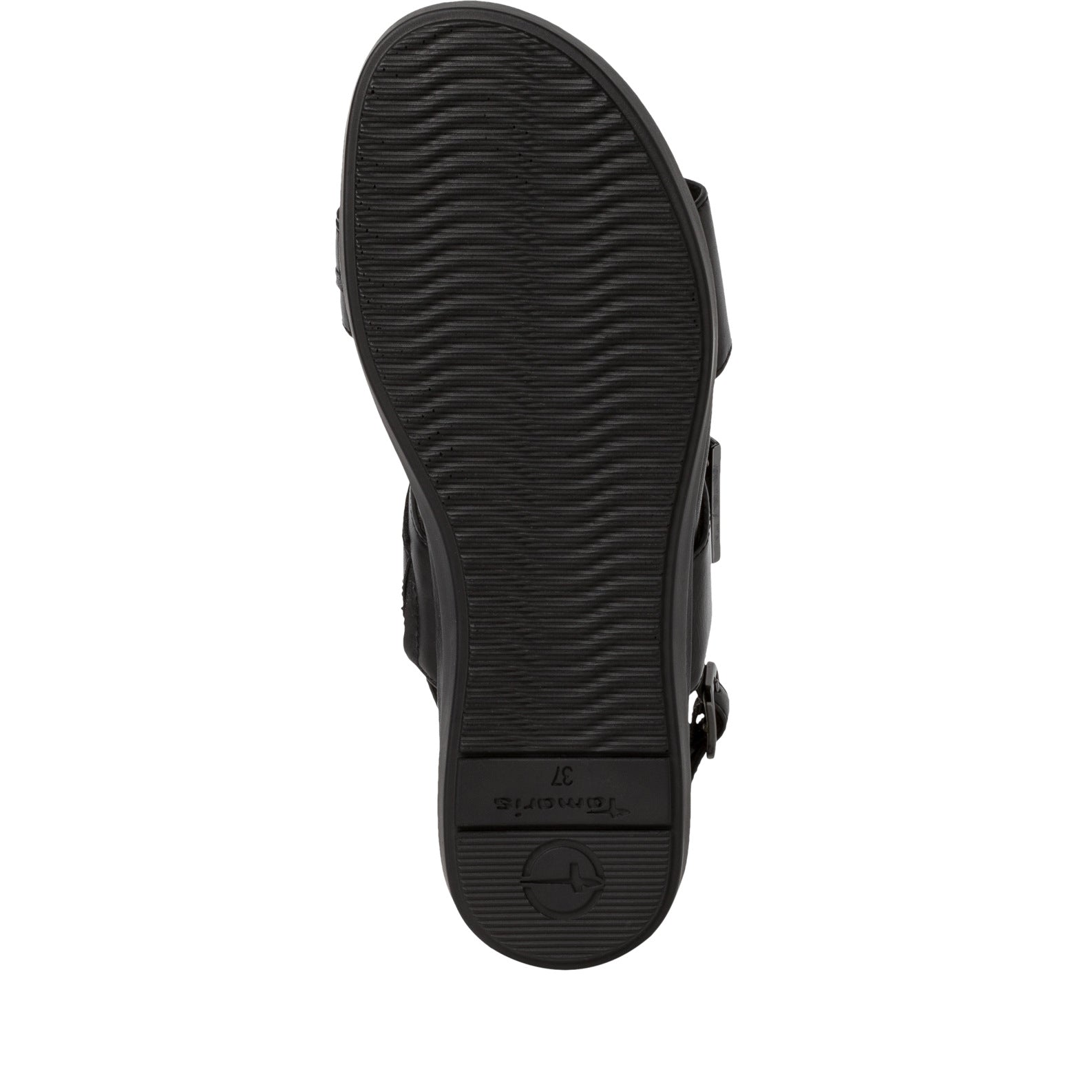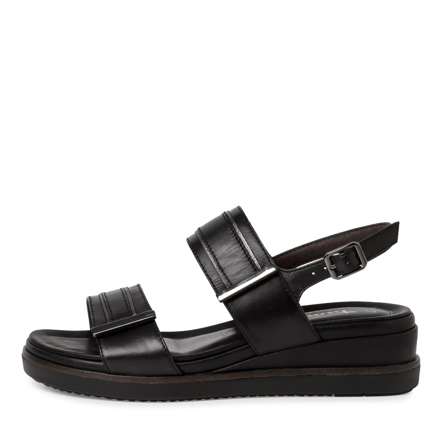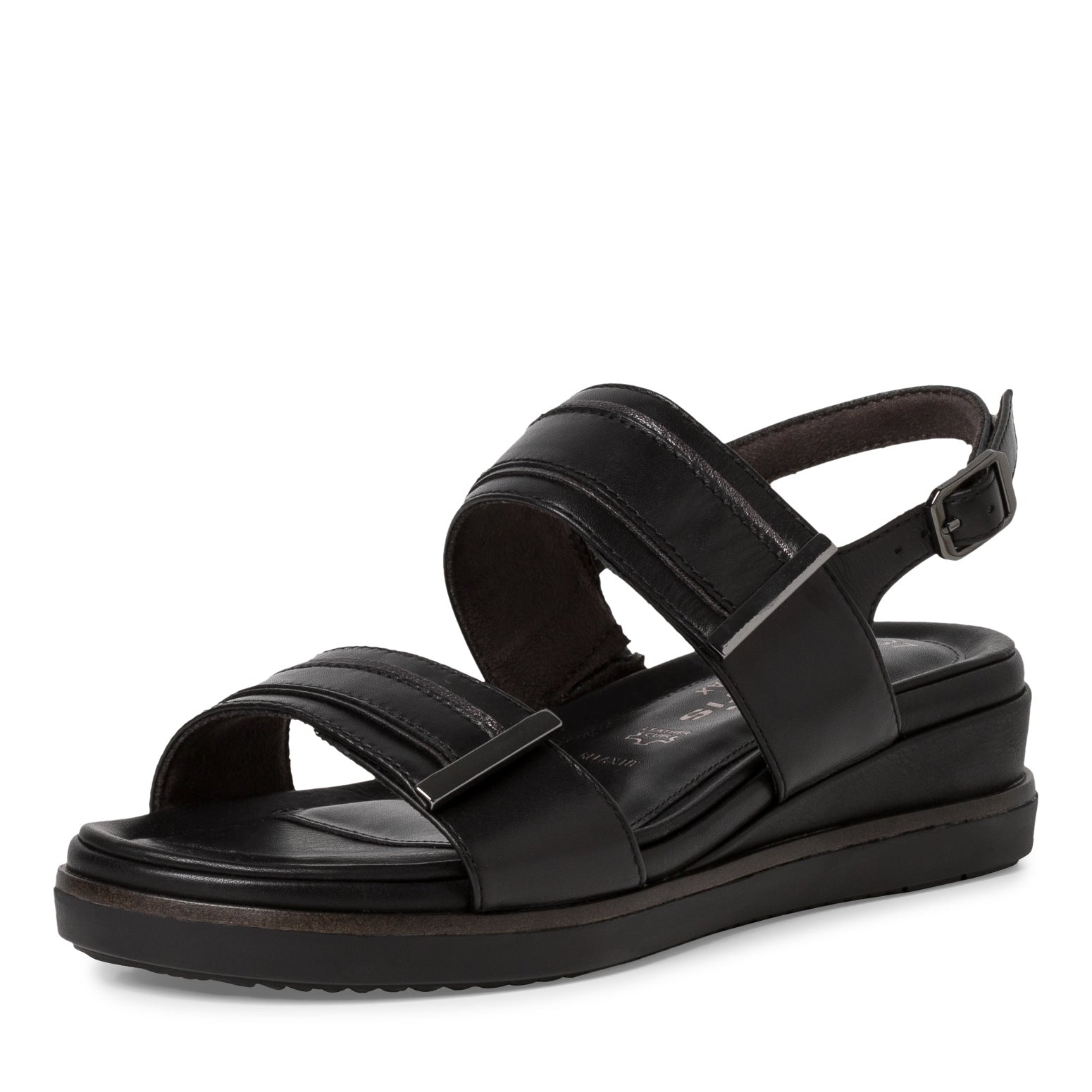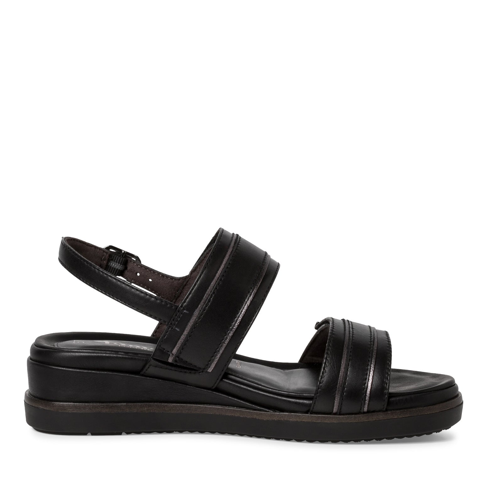 Sandalo TAMARIS in pelle nera con plantare estraibile. Comodissimo con due chiusure a velcro e una con fibbia