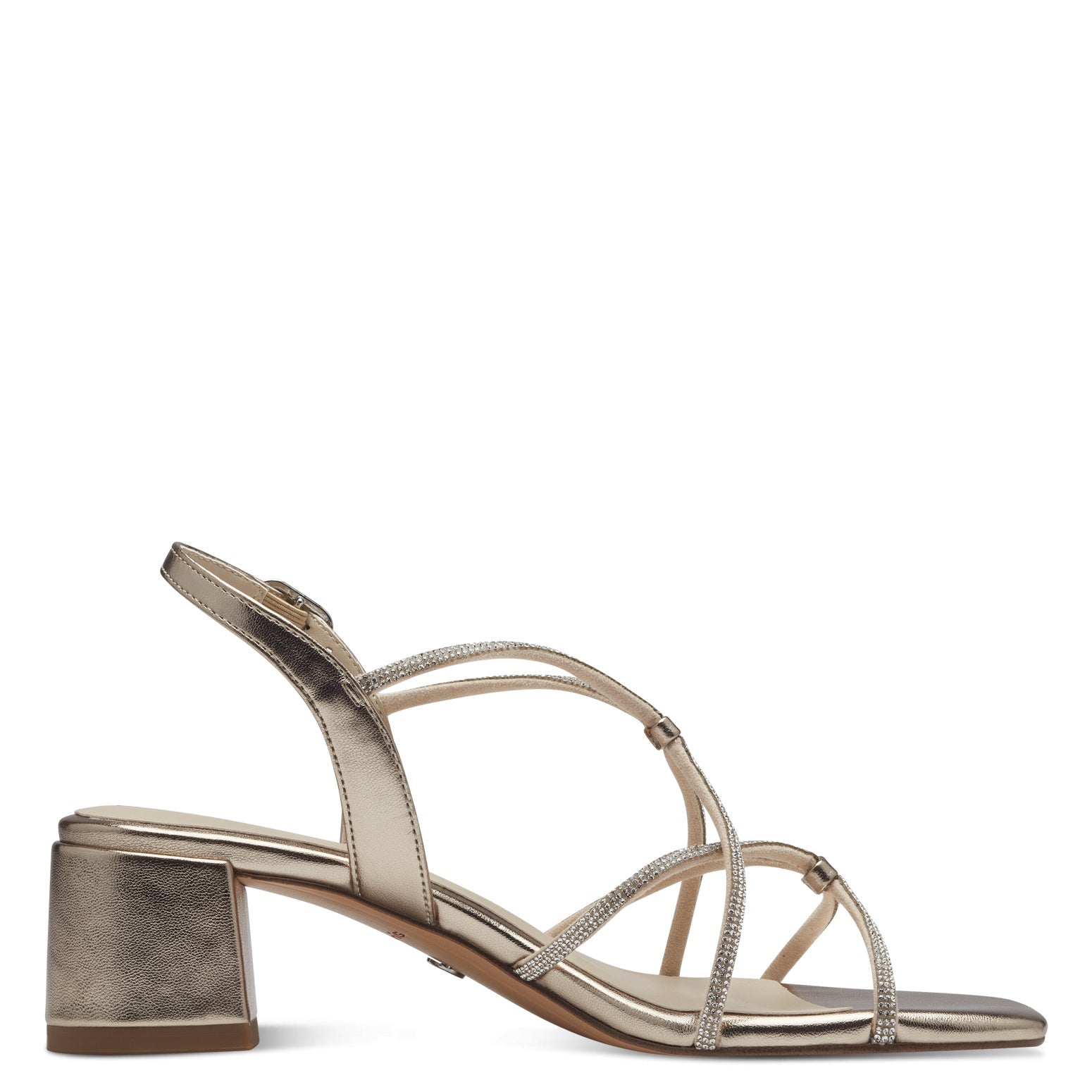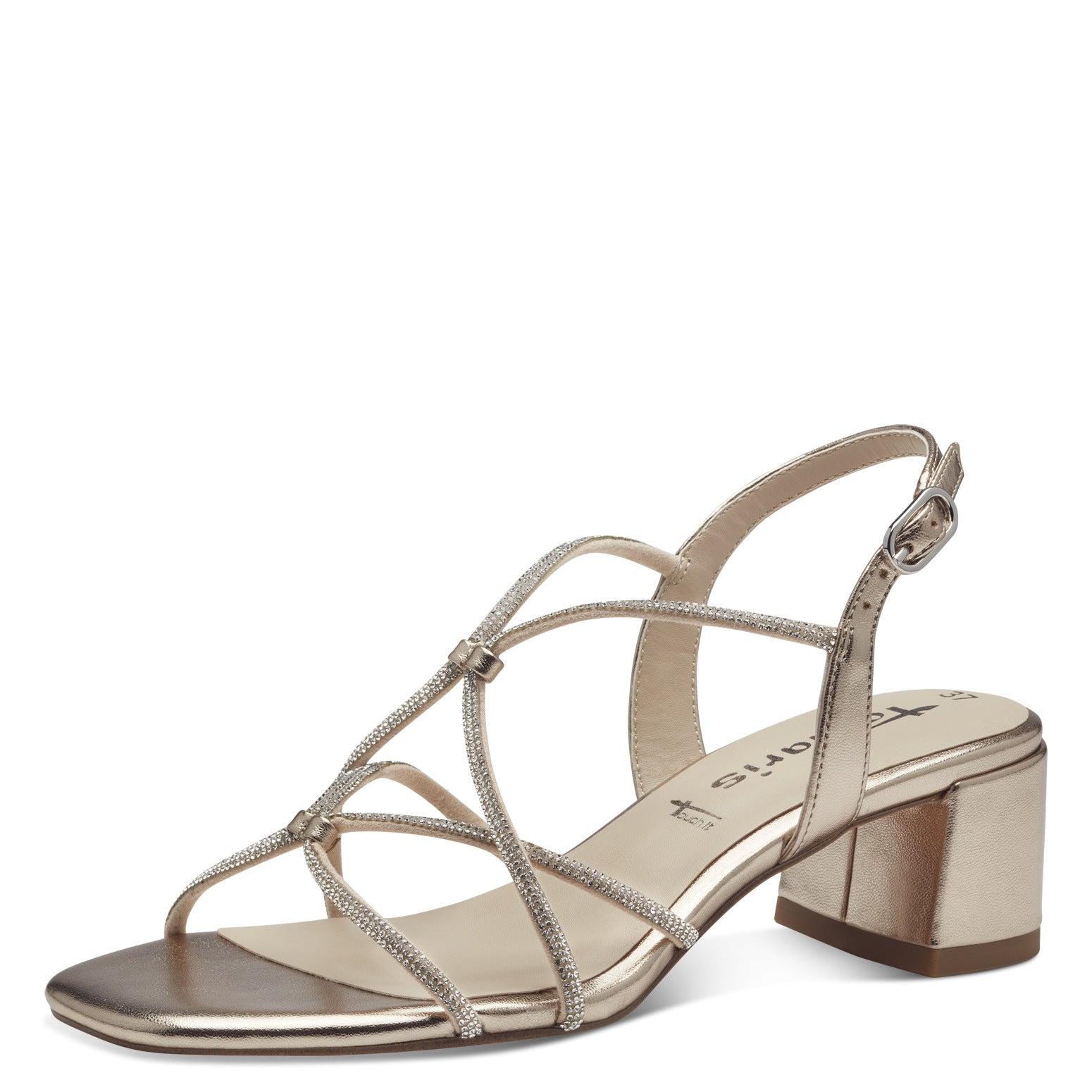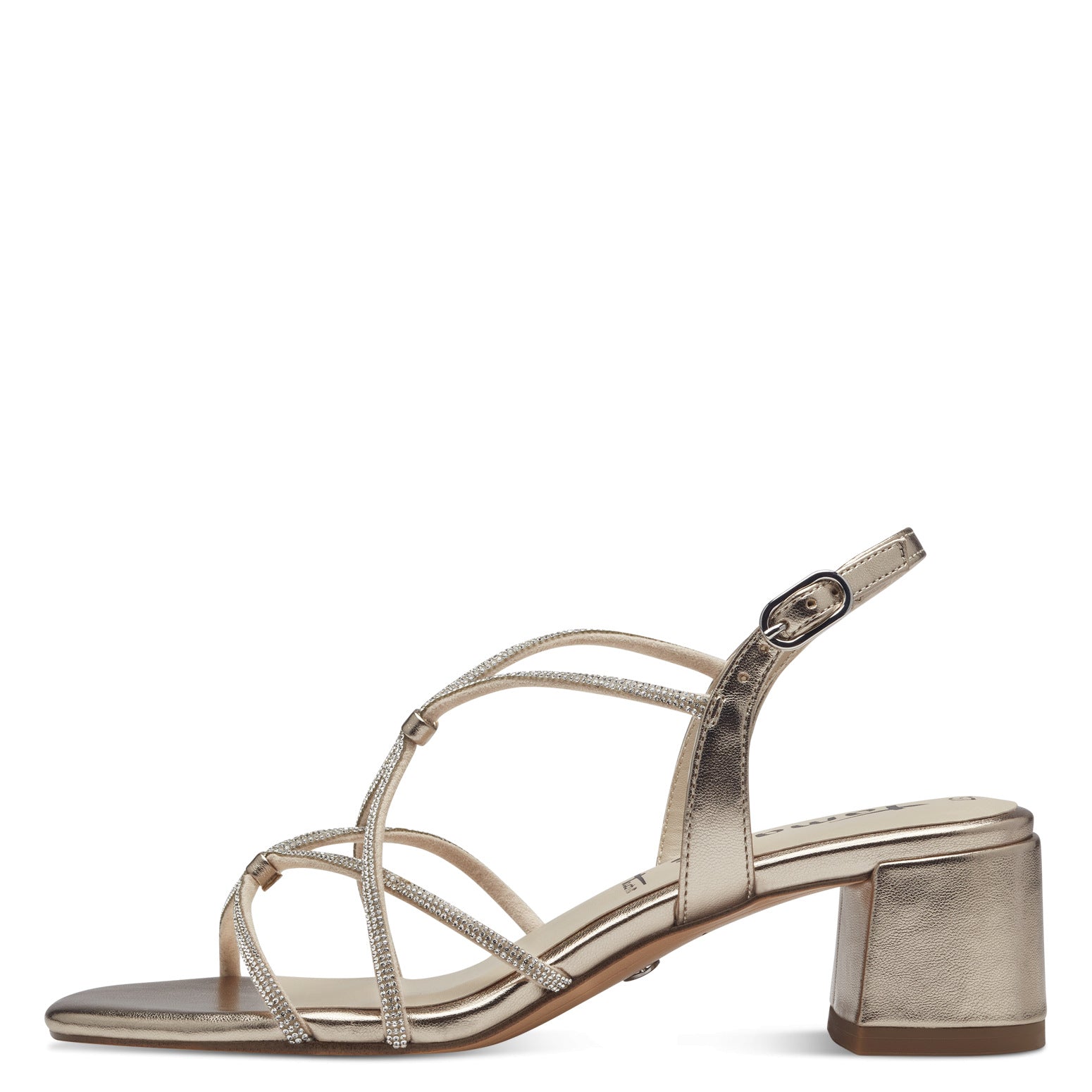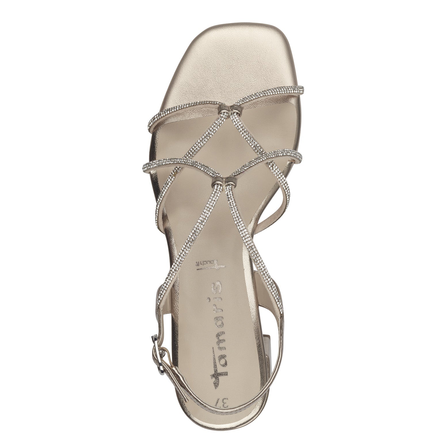 Bellissimo sandalo Vegano certificato in oro con brillantini.