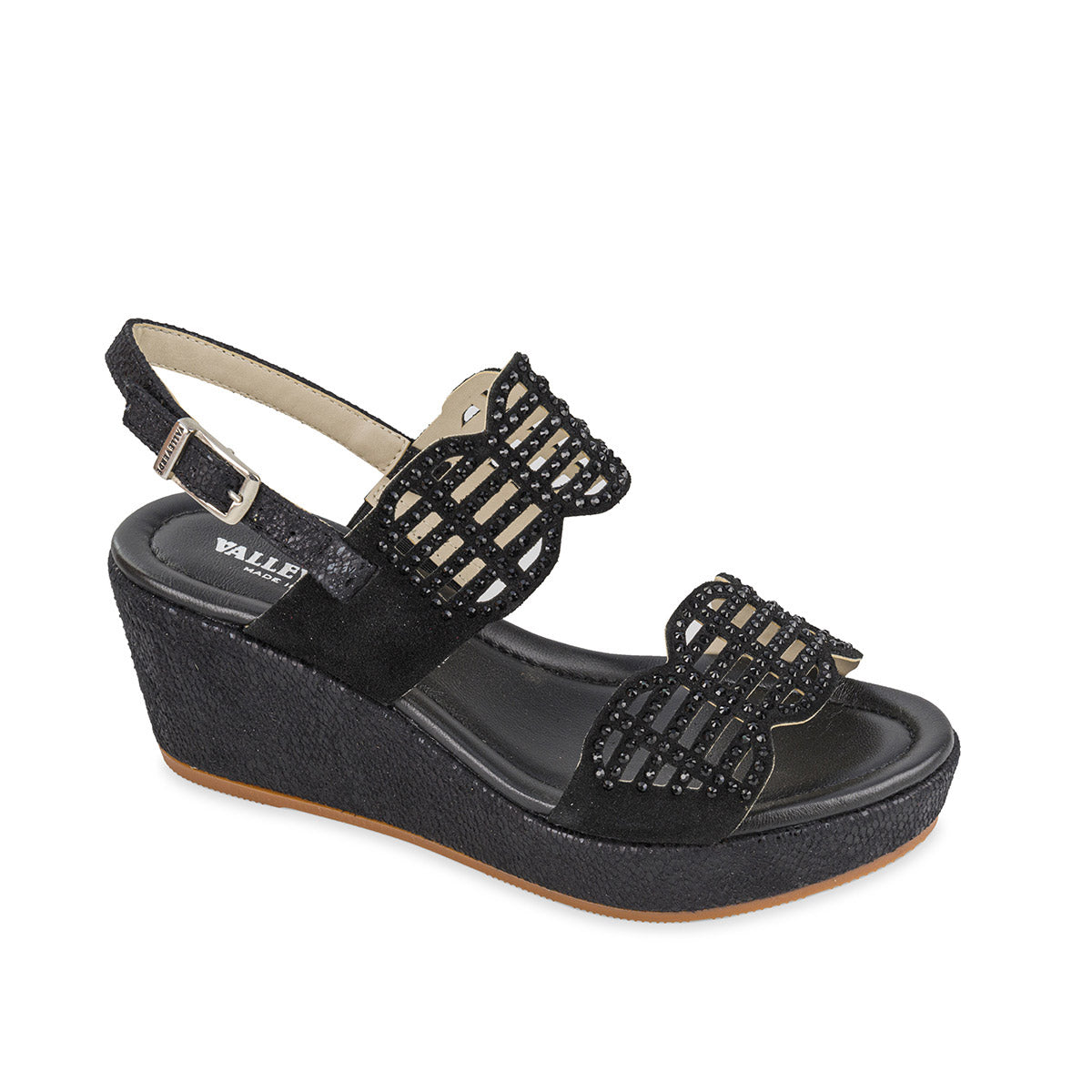 Sandalo VALLEVERDE elegante in nero con zeppa alta e cinturino.