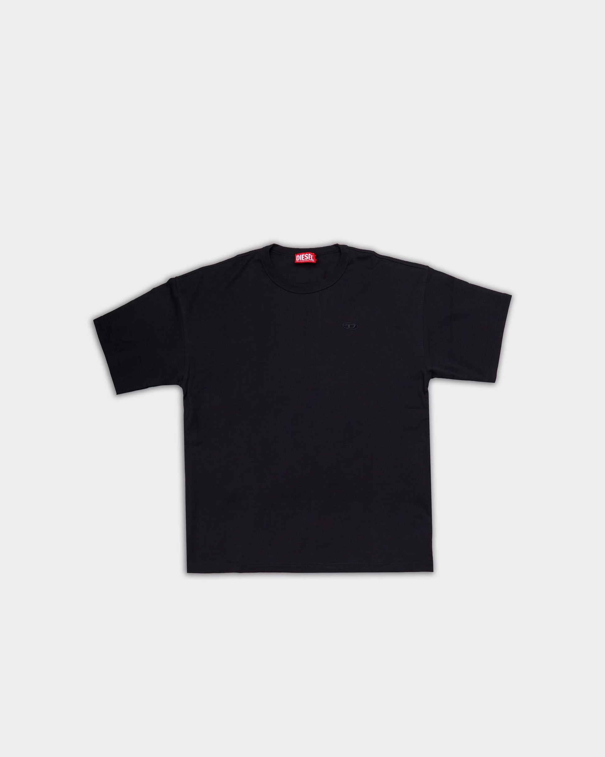 T-shirt nera con piccolo logo tono su tono sul petto. Tessuto in cotone.