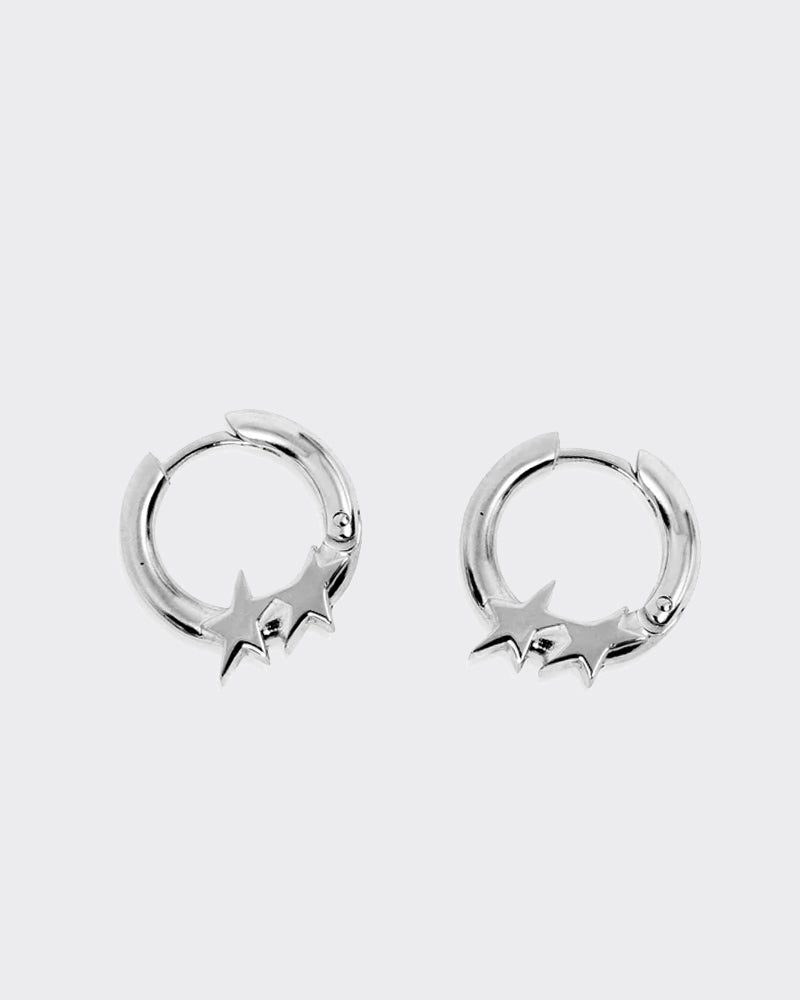 Orecchini a cerchio in argento con dettagli a forma di stella.