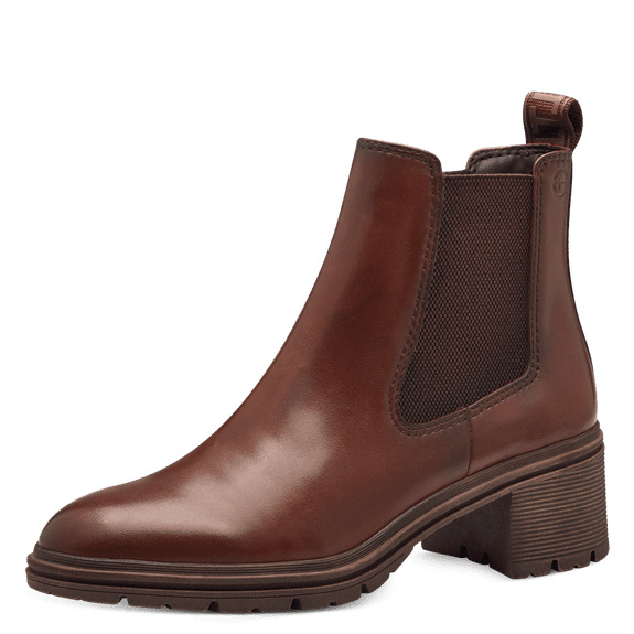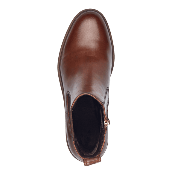 Bellissimo stivaletto in pelle marrone con elastico e zip.