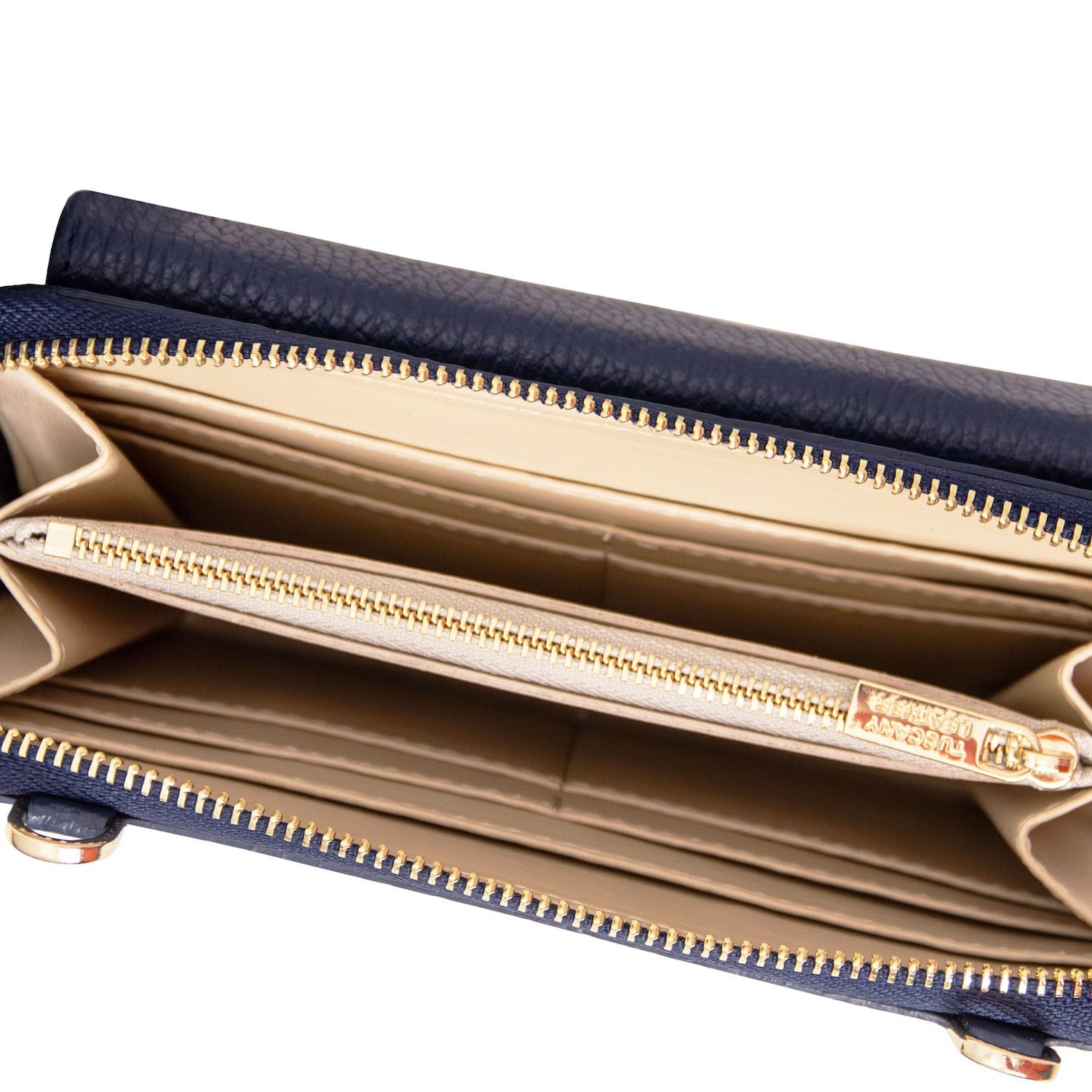 - Outside part: Gold hot-stamped with the Tuscany Leather logo, pocket on the front