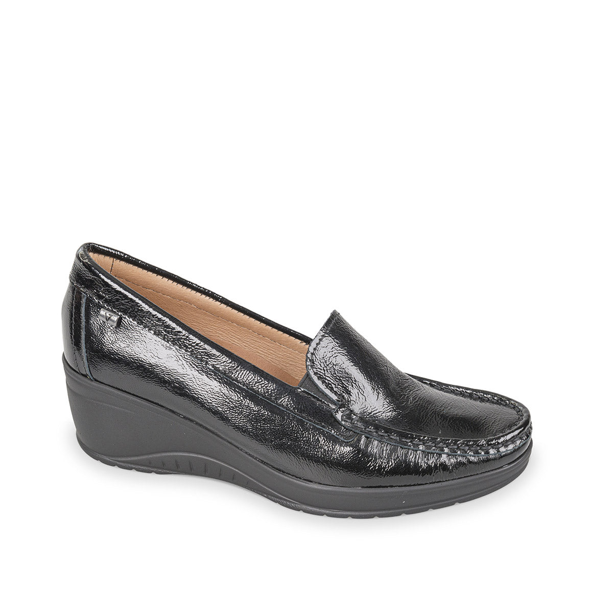 Bellissimo mocassino VALLEVERDE da donna in vitello nappato nero lucido.