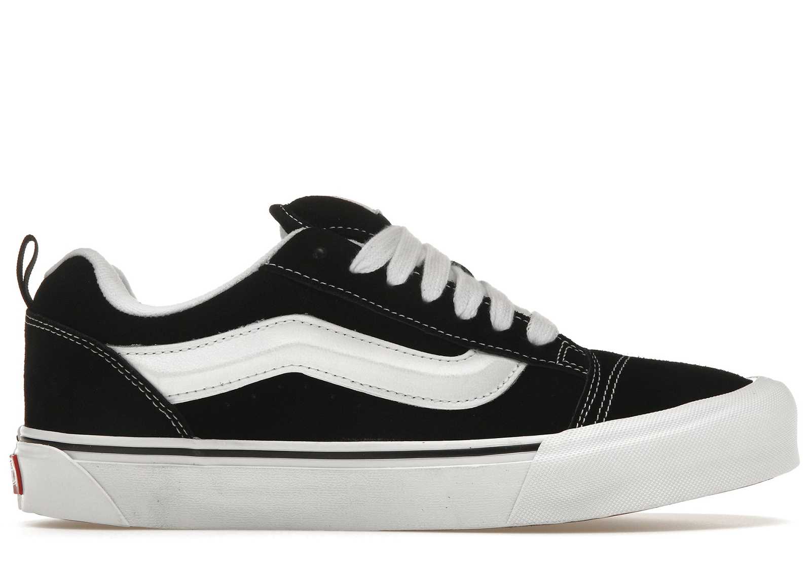 the vans knu skool black white is a classic skate shoe that combines style and functionality. the upper is made of durable canvas material, which is both breathable and comfortable. the black and white colorway is timeless and versatile, making it easy to pair with any outfit. the shoe features a padded collar and tongue for added support and comfort, while the signature rubber waffle outsole provides excellent grip and traction on the board. released on february 18, 2023, the vans knu skool black white is priced at $75, making it an affordable option for those looking for a reliable skate shoe. the shoe is available in a range of sizes, ensuring a comfortable fit for everyone. something we love about vans knu skool black white is its classic design that never goes out of style. our experts think the best features of this shoe are its durable canvas upper, padded collar and tongue, and signature rubber waffle outsole. what we love about the vans knu skool black white is its versatility, making it a great choice for both skating and everyday wear. the standout feature of the vans knu skool black white is its timeless black and white colorway that can be dressed up or down. our experts especially love the affordable price point, making it accessible to a wide range of consumers.