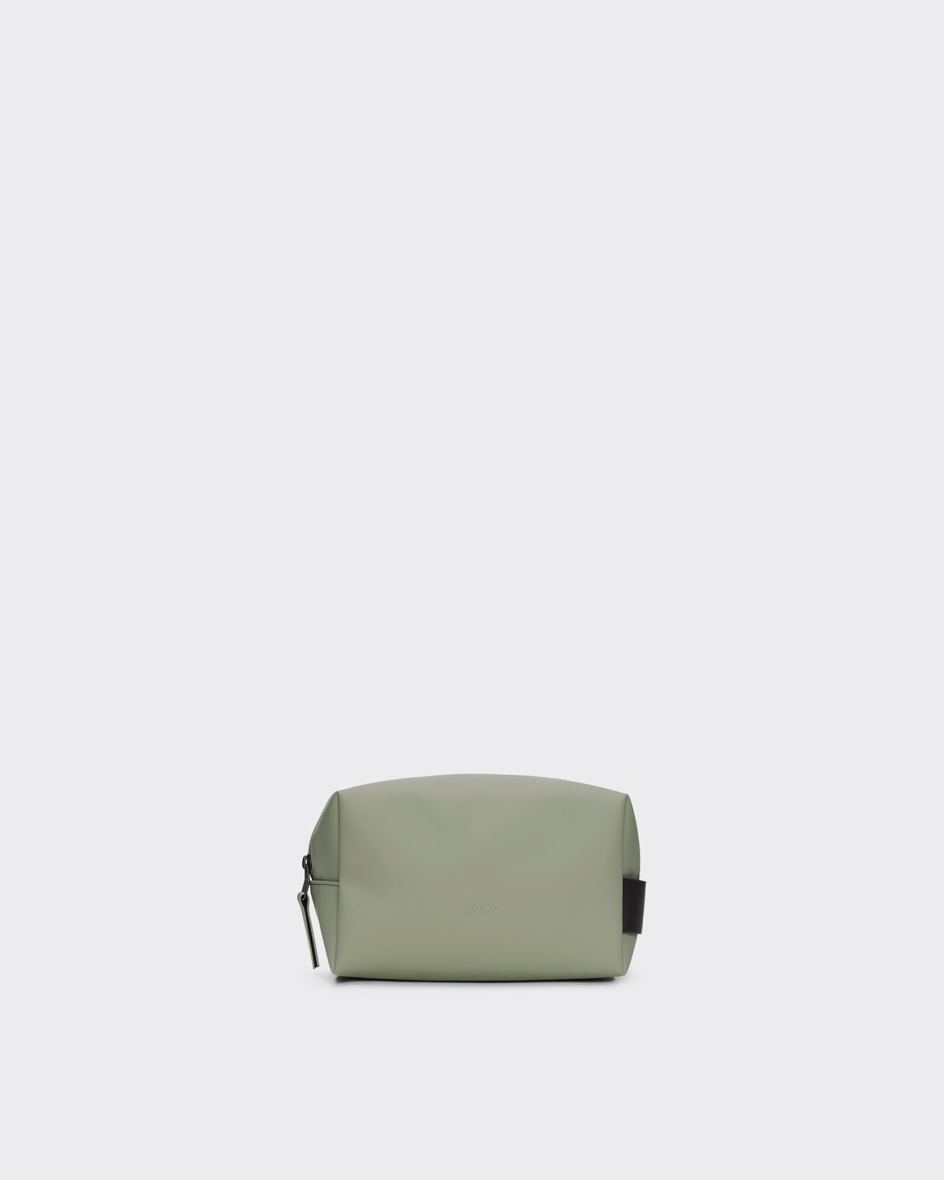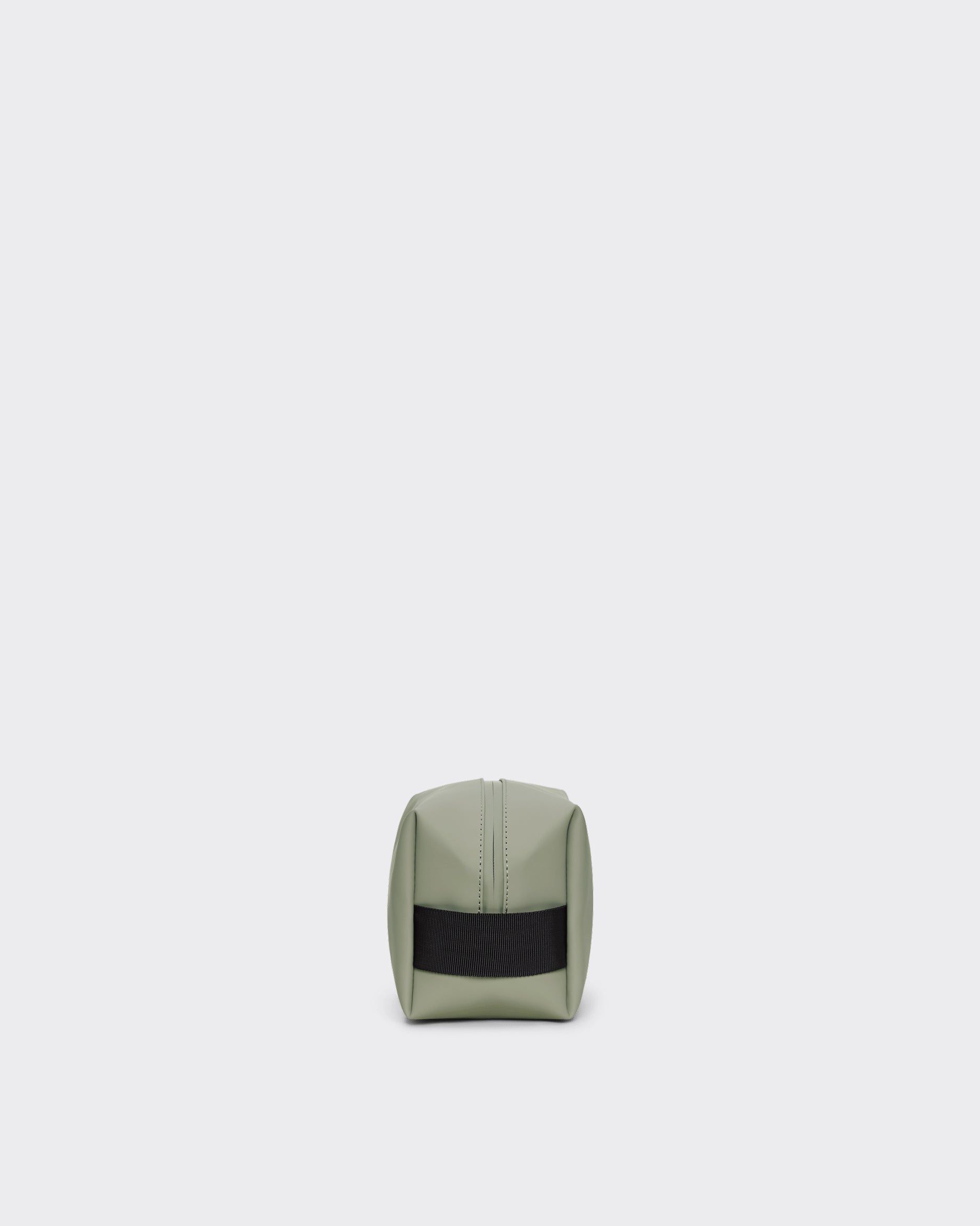 La Wash Bag Small è realizzata in tessuto PU impermeabile firmato Rains, progettato per essere robusto, duraturo e piacevole al tatto.