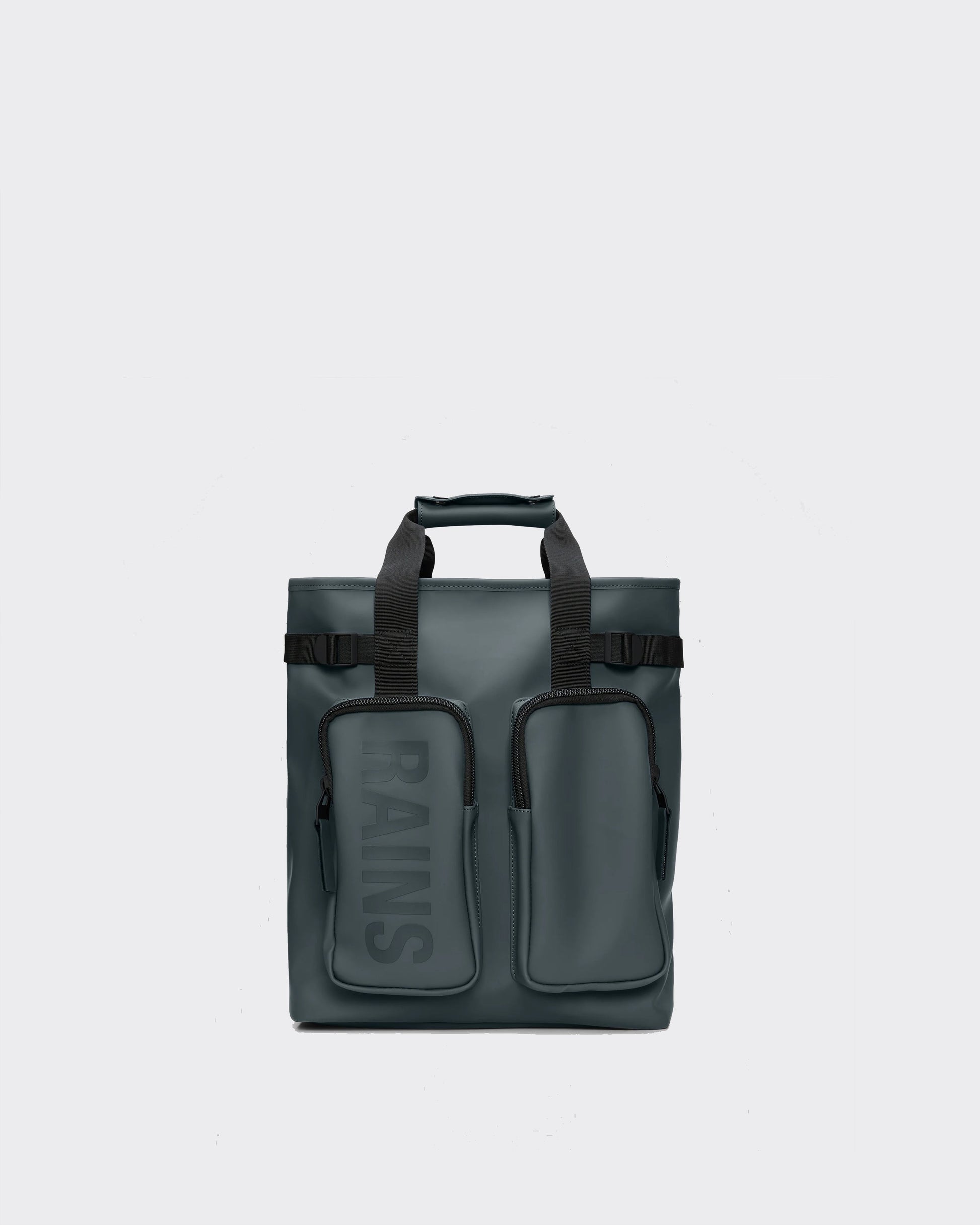 La Texel Tote Backpack è realizzata nell'iconico tessuto PU impermeabile di Rains, progettato per essere robusto, duraturo e piacevole al tatto.