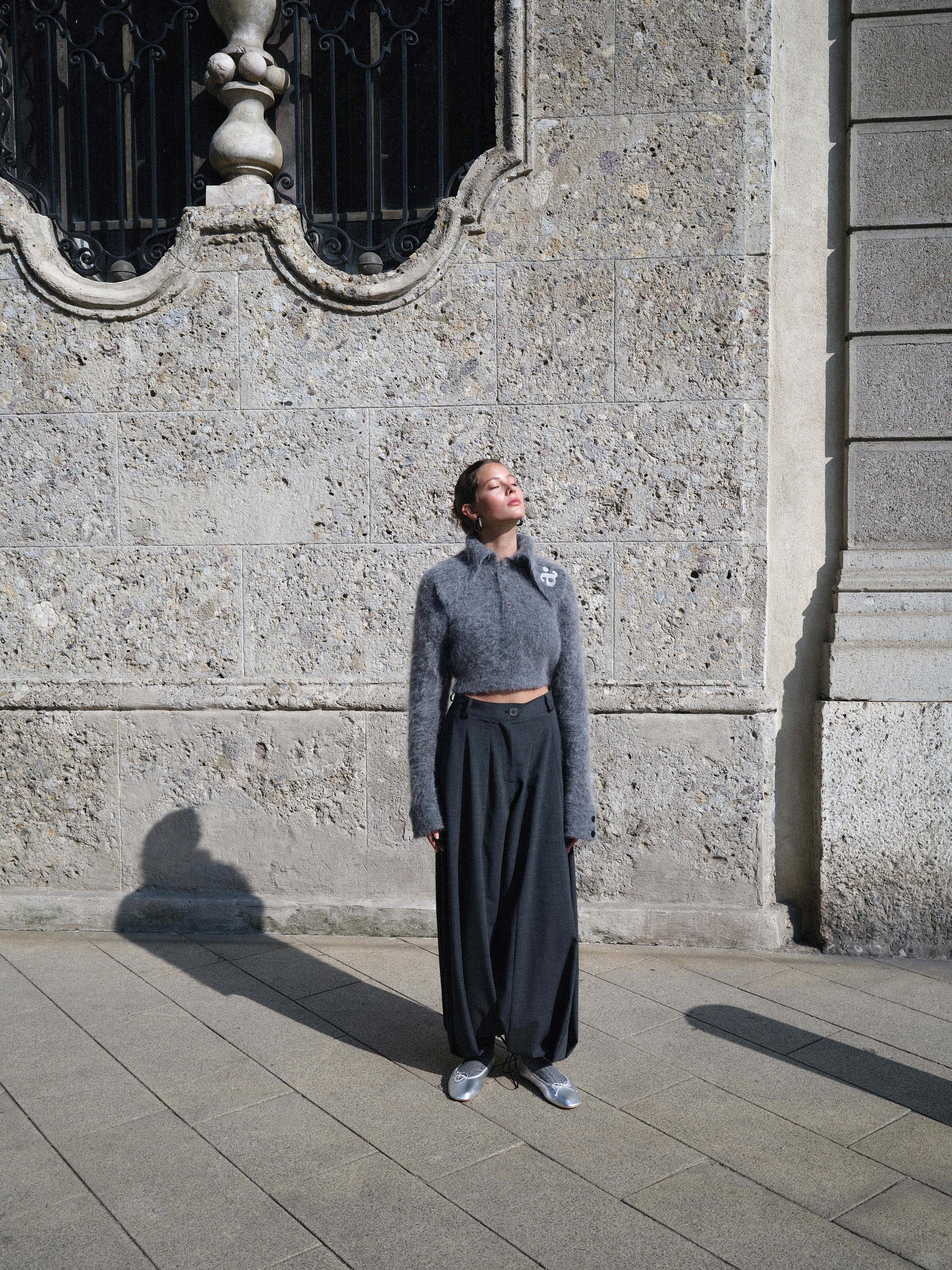 This plush and comfortable crop polo sweater in mohair and alpaca wool is designed to elevate any chic outfit. The refined touch comes from our logo, elegantly embroidered on the collar.