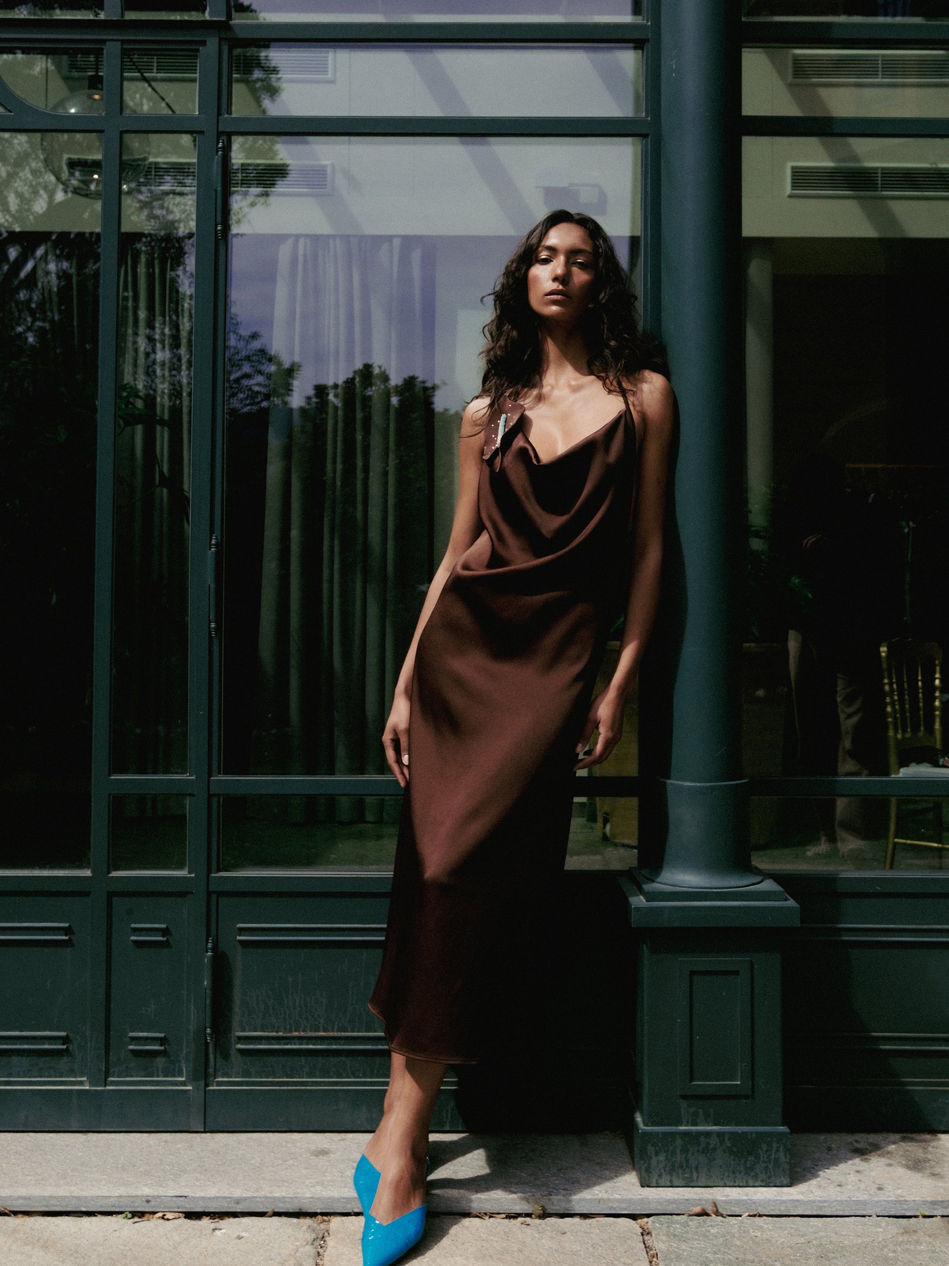 Embodying both romance and elegance, the Rachel Dress is made from luxurious cady fabric.
