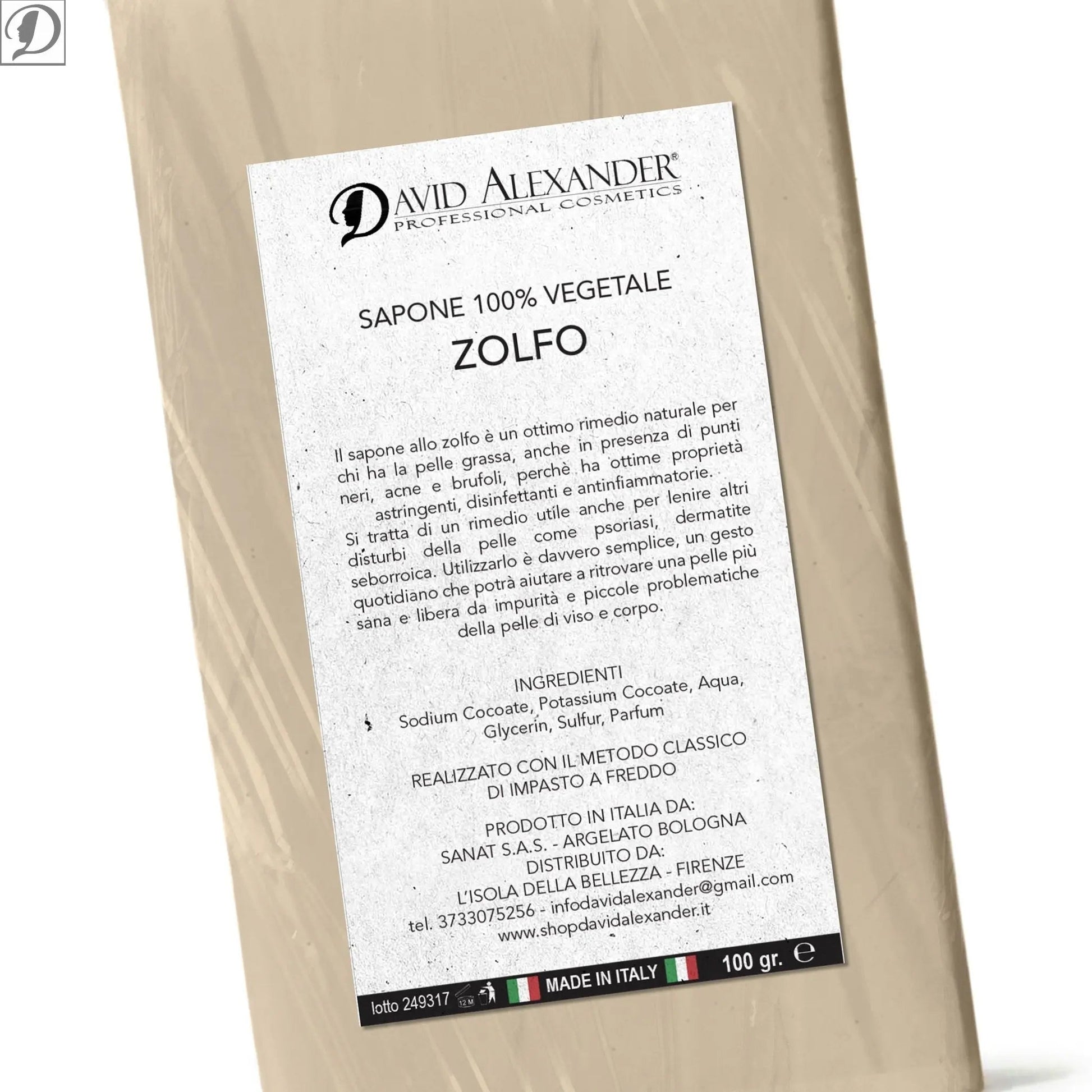 Il Sapone Vegetale allo Zolfo è un prodotto 100% naturale, formulato specificamente per la pelle grassa, impura o acneica. Grazie alle note proprietà dello zolfo, questo sapone esercita un’azione purificante, antibatterica e seboregolatrice, aiutando a contrastare acne, brufoli, punti neri e imperfezioni cutanee.