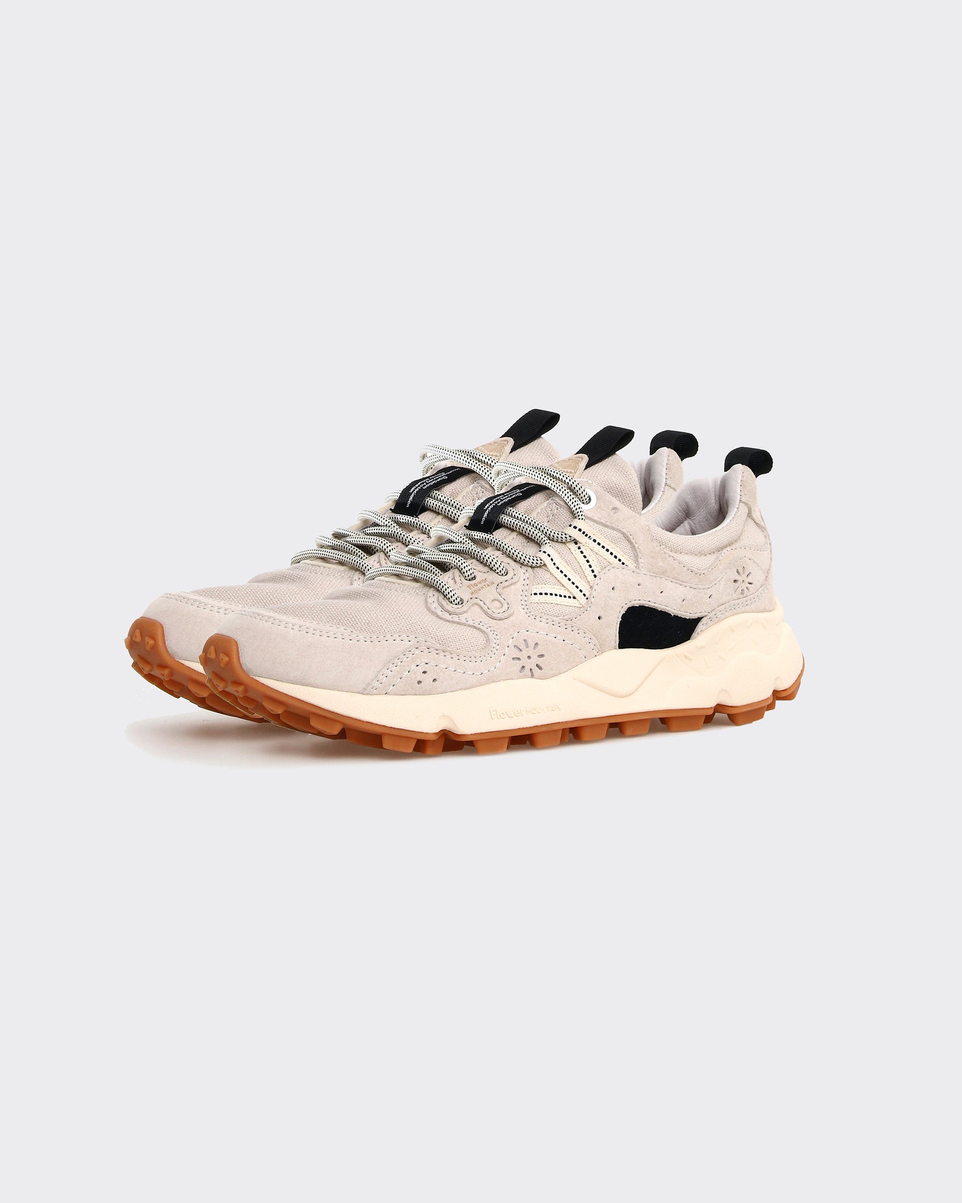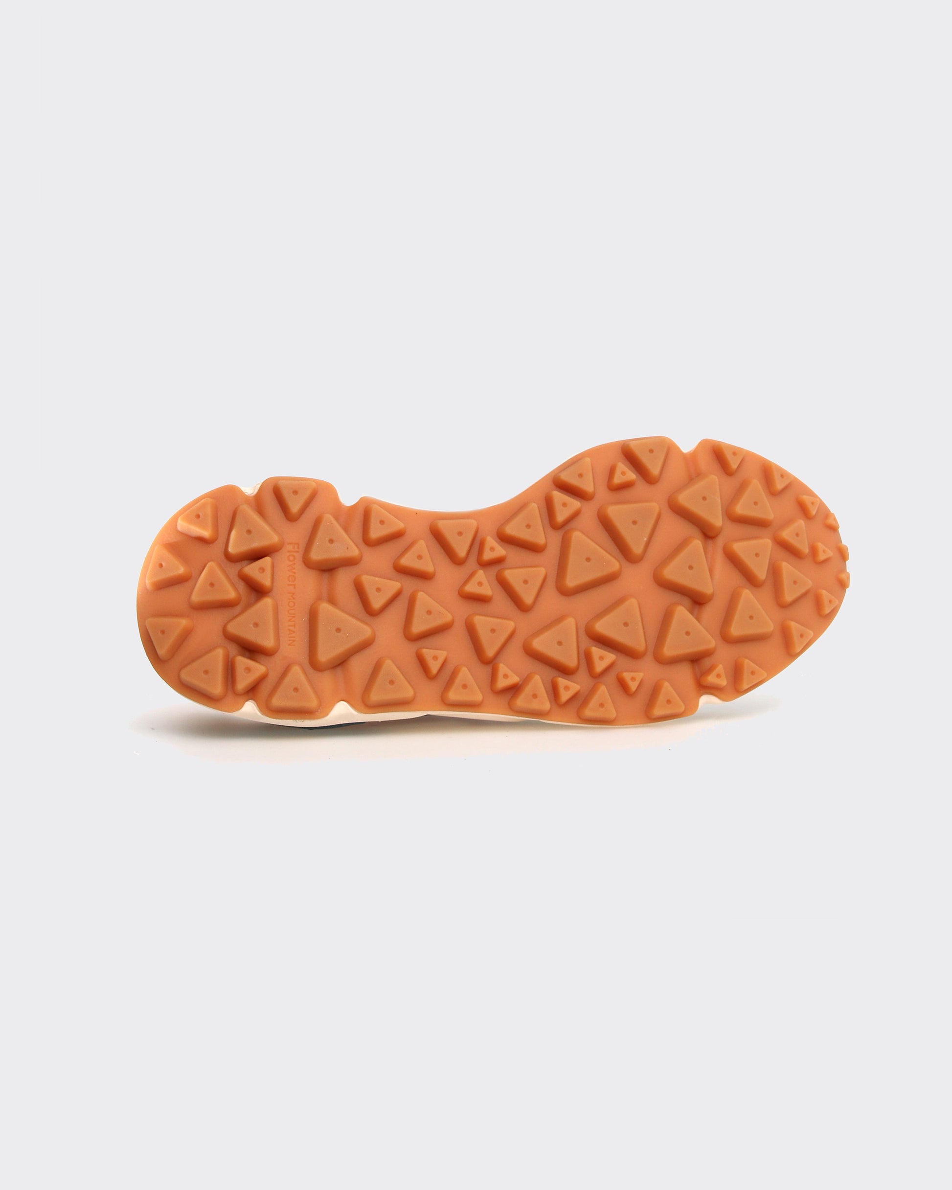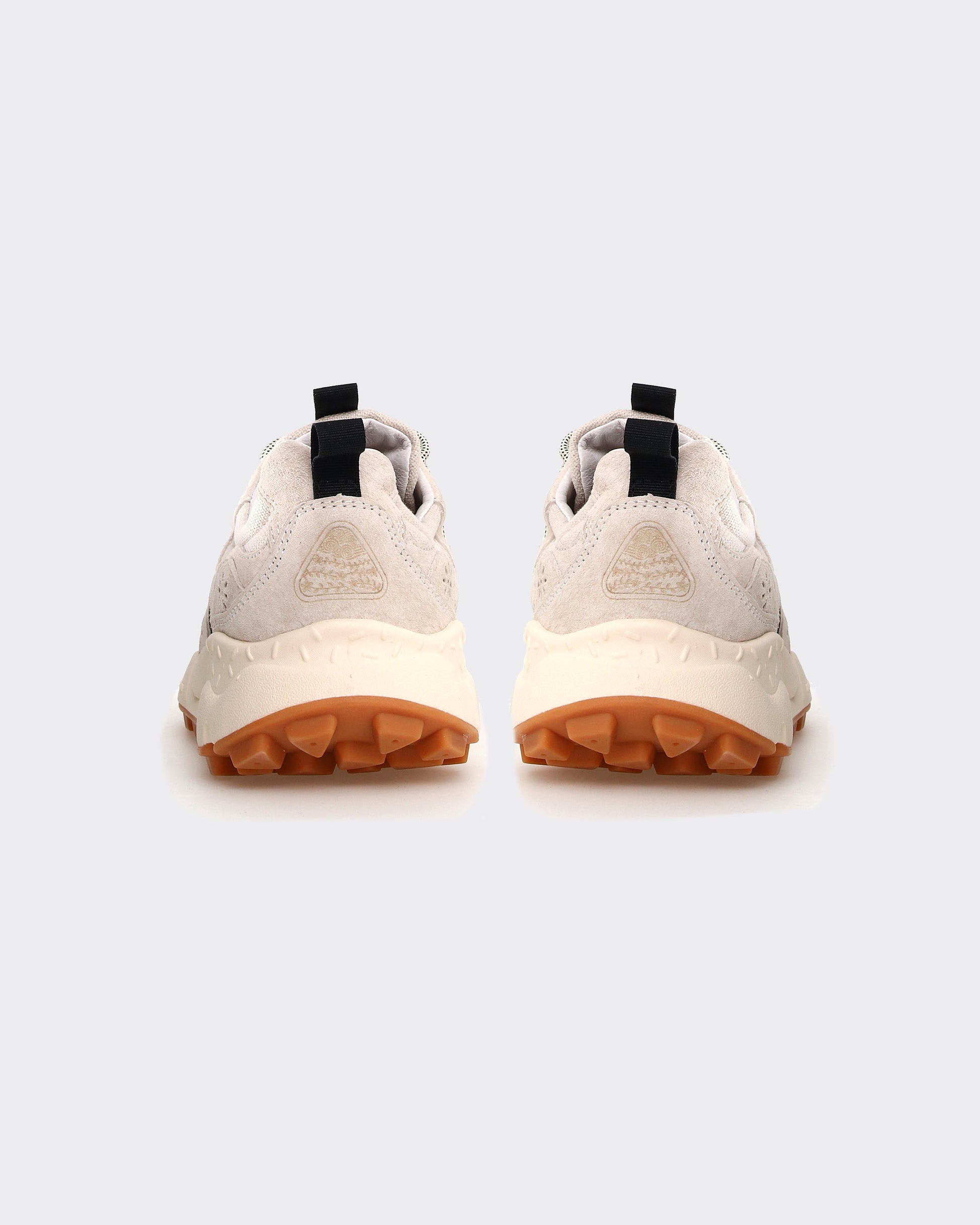 Sneakers beige in tessuto con motivi a fori, suola in gomma con battistrada geometrico.