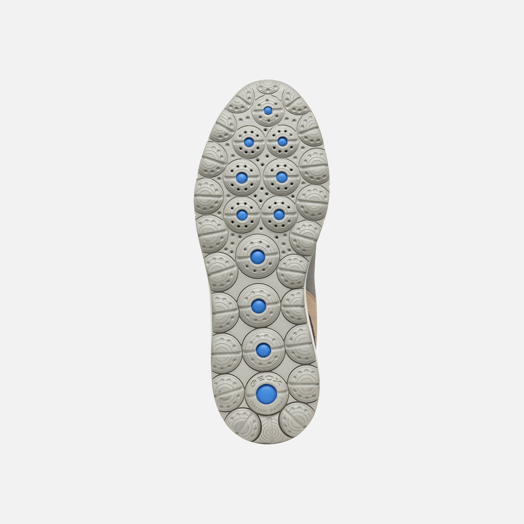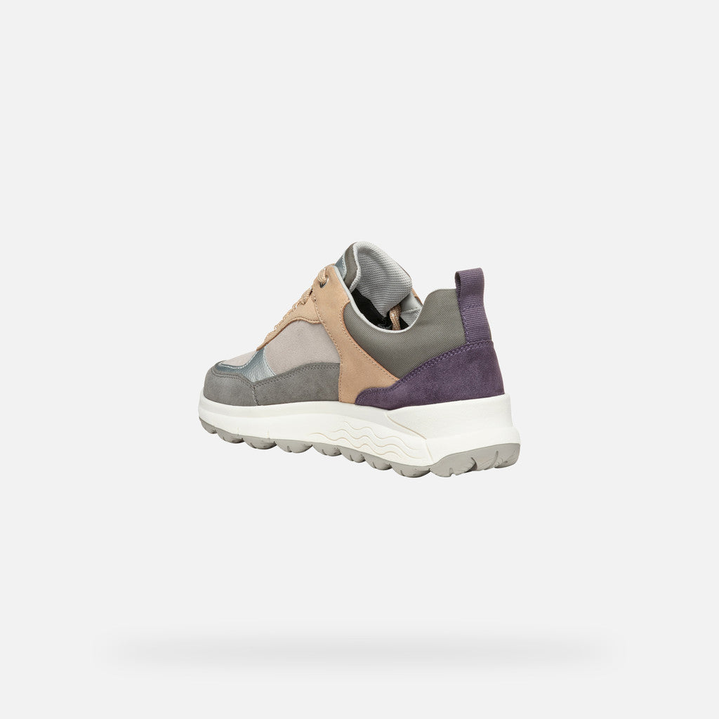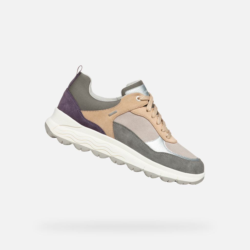 Sneaker donna impermeabile dal look dinamico, che offre massima ammortizzazione. Proposta in una piacevole combinazione di grigio scuro e viola scuro, sfoggia una moderna tomaia realizzata in scamosciato. Confortevole e traspirante, Spherica™ 4x4 ABX arricchisce con una nota active-chic i casual look quotidiani.